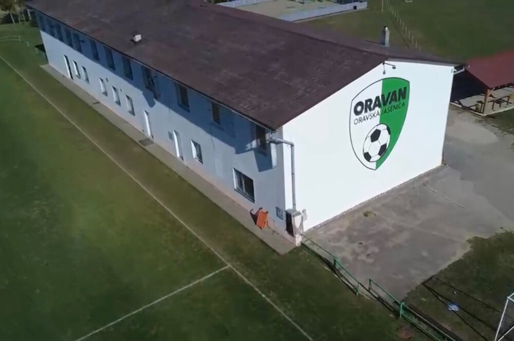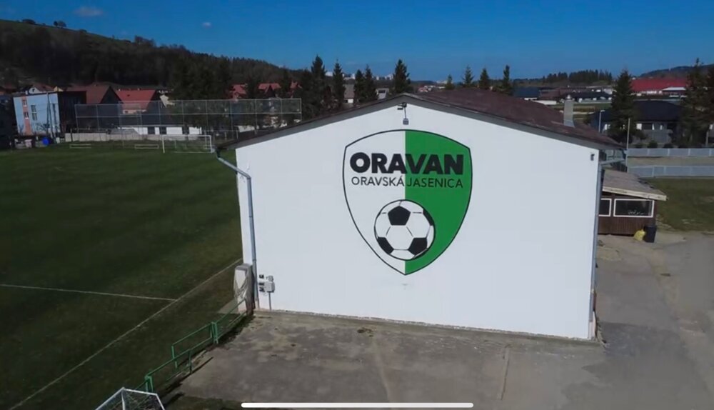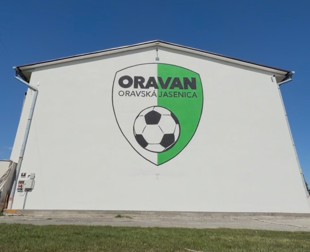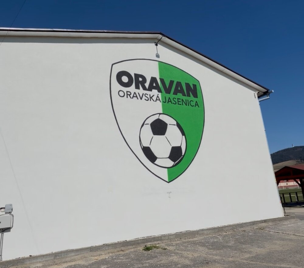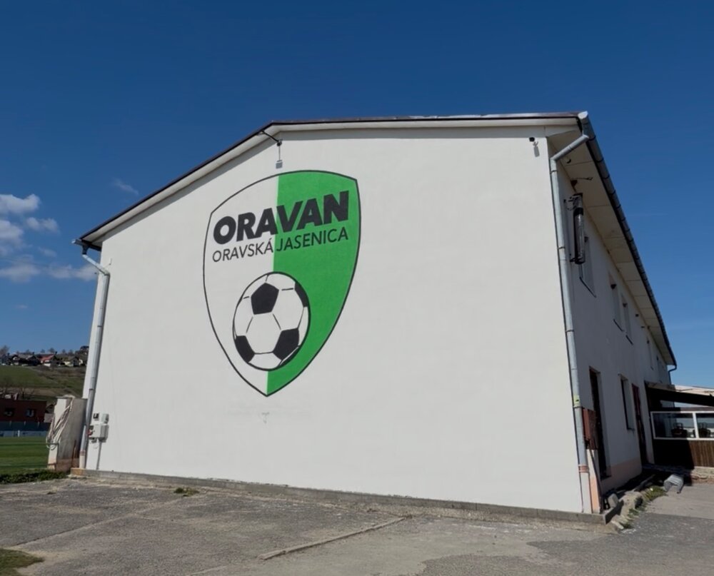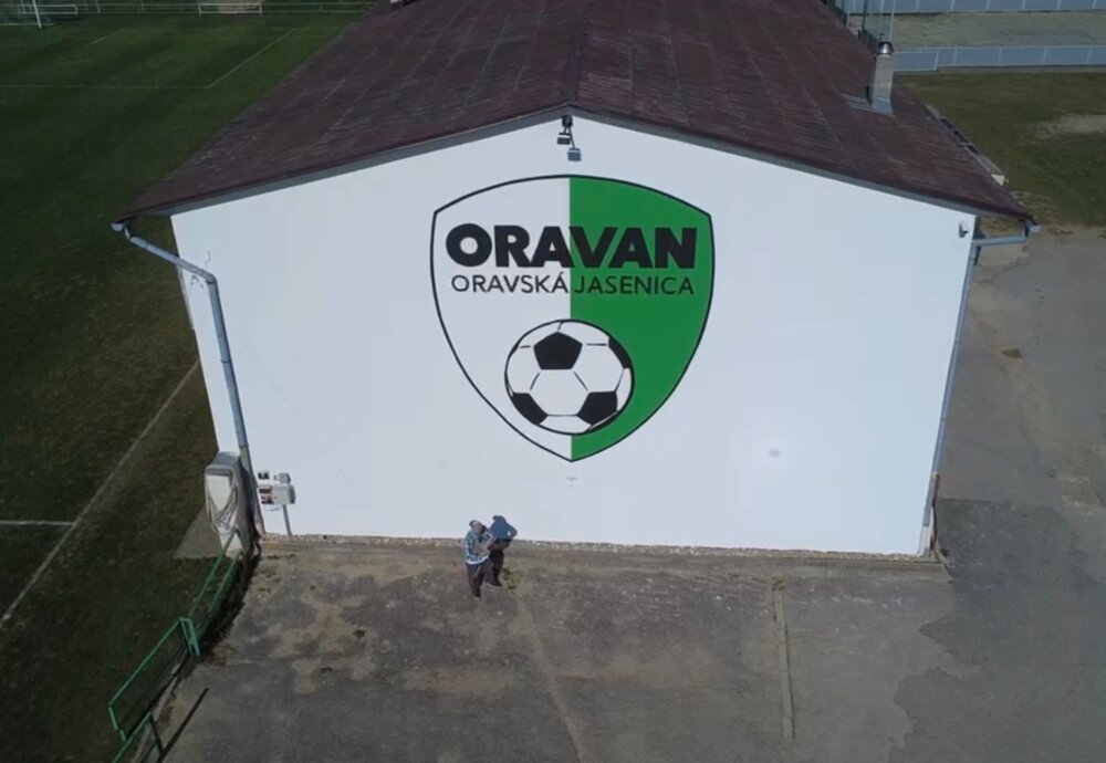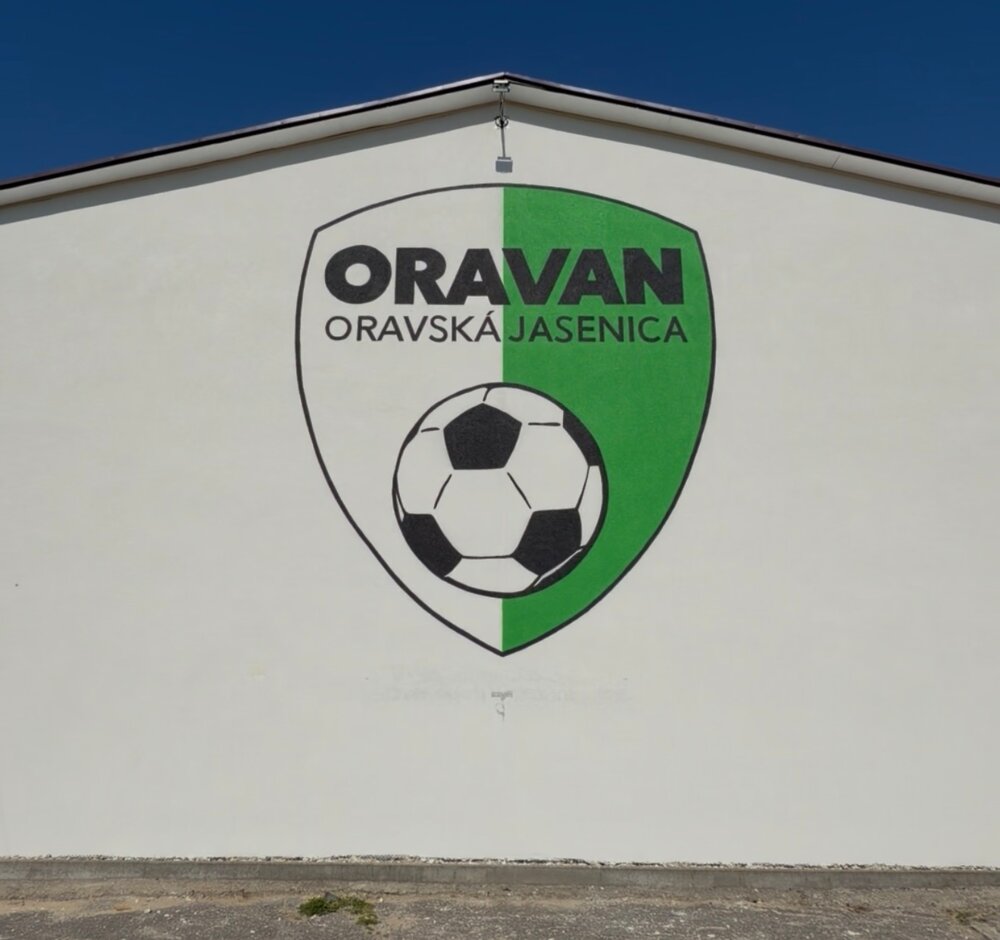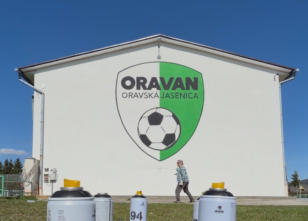 Veľkoformátová maľba 5m vysokého erbu oravského furbalového klubu TJ ORAVAN - Oravská Jasenia pôsobí viac než majestátne.