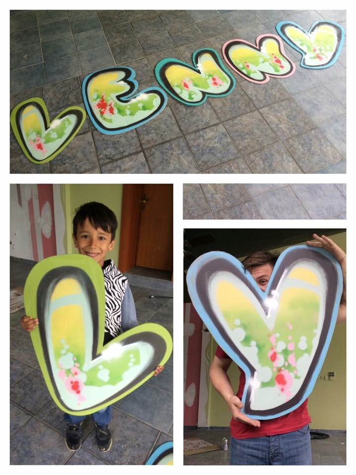 Moj malý slovensko-nemecký kamarát Lenny chcel do svojej detskej izby svoje meno v graffiti štýle, no kedže jeho izba je dosť ďaľeko - in Deutschland :) , tak som to vymyslel tak, že si ho odnesie v kufri. Auf Wiedersehen